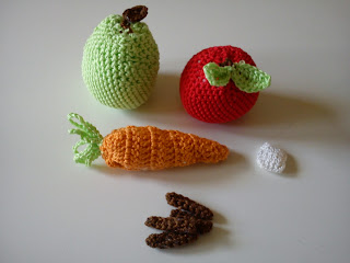 De appel en de peer komen uit het boekje Lieve knuffels zelf haken van Ana Paula Rimoli.